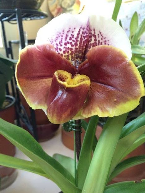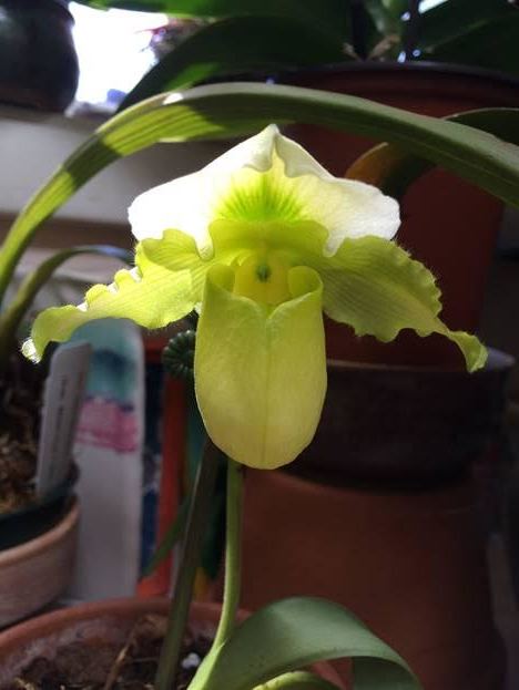 My sister, fellow orchid lover, came to visit Sunday, or should I rephrase and say made a delivery? The big orchid show at Longwood Gardens (where she volunteers) just ended and they sell off the exhibition plants, deeply discounted. She obviously was in an uncontrollable situation (for an addict). Let’s just say, I am now the proud owner of the most incredible collection of paphiopedilum orchids. I’ve lusted for and dreamt about various species…now I own them! I know it must have been hard for my sis to separate from these truly amazing wonders of nature. You can bet I’ll be sharing my prize orchids as they blossom. It’s always a challenge/most rewarding kind of relationship. I give them love and attention, they fulfill me with beautiful flowers (if I’m lucky). Thank you, sista Lisa, for taking me on this journey (hobby/addiction), with you. Where and who these beautiful orchids came from makes them even more precious to me.