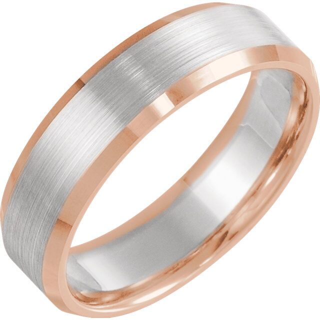 Be the first to review “BEVELED EDGE WHITE AND ROSE GOLD BAND WITH SATIN FINISH”