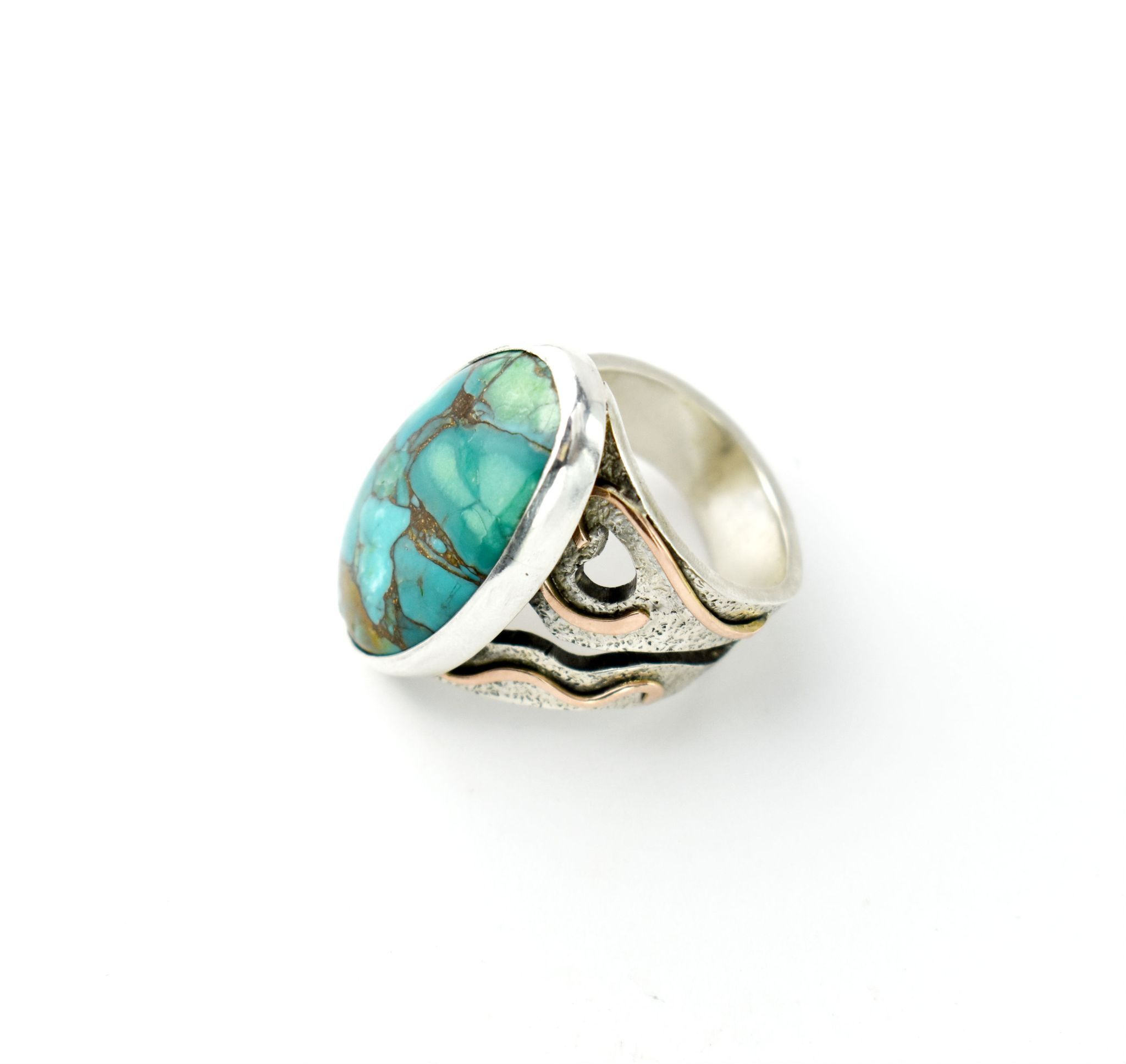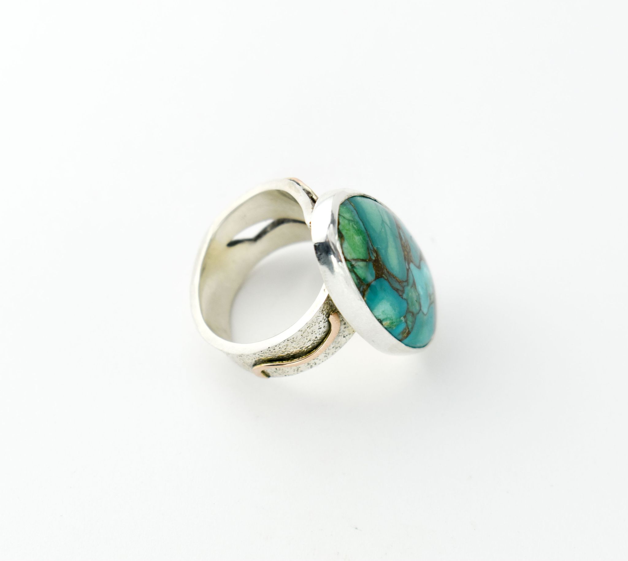 Sterling Silver Turquoise with Copper Adjustable Ring with 14k Pink Gold Accents