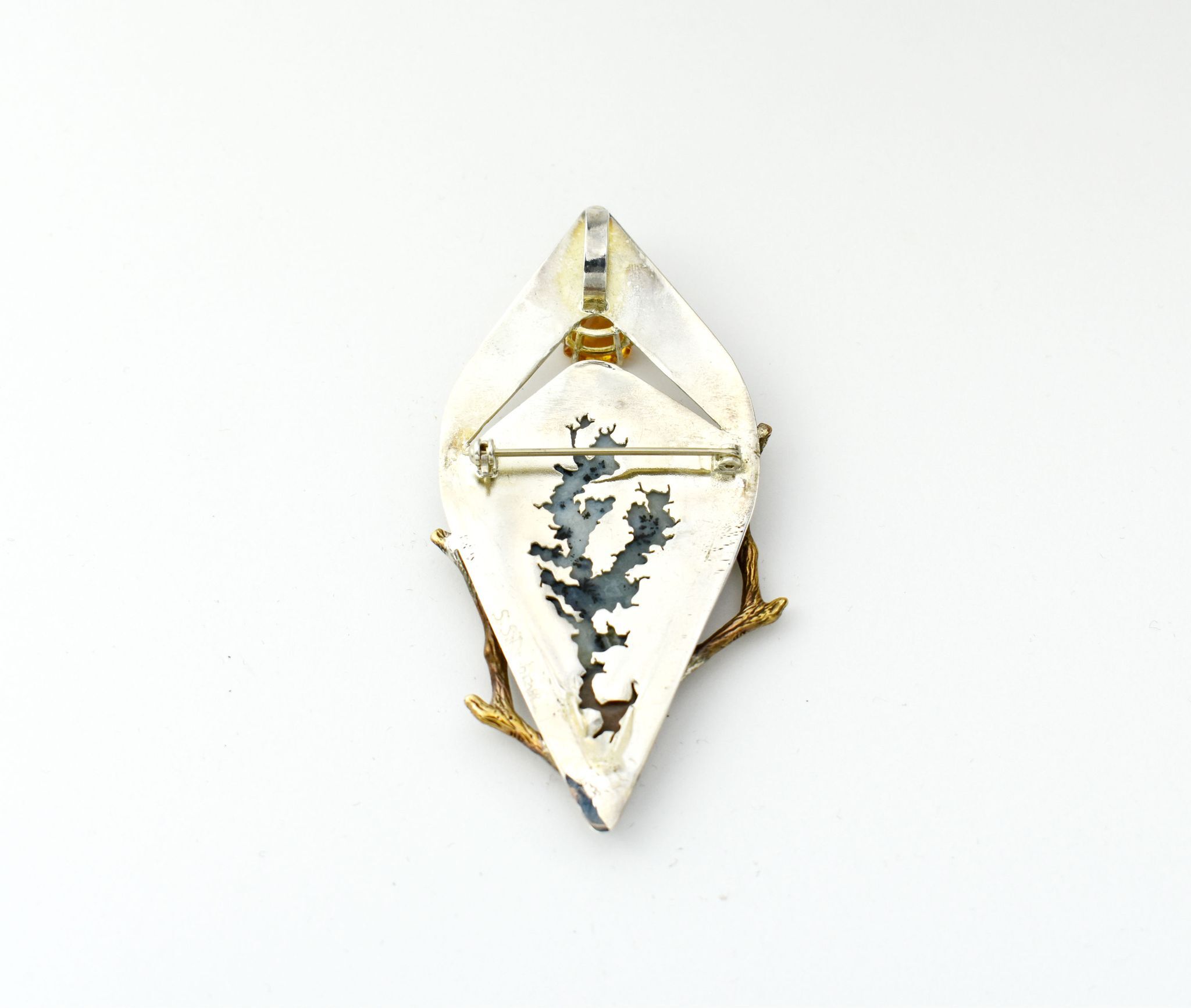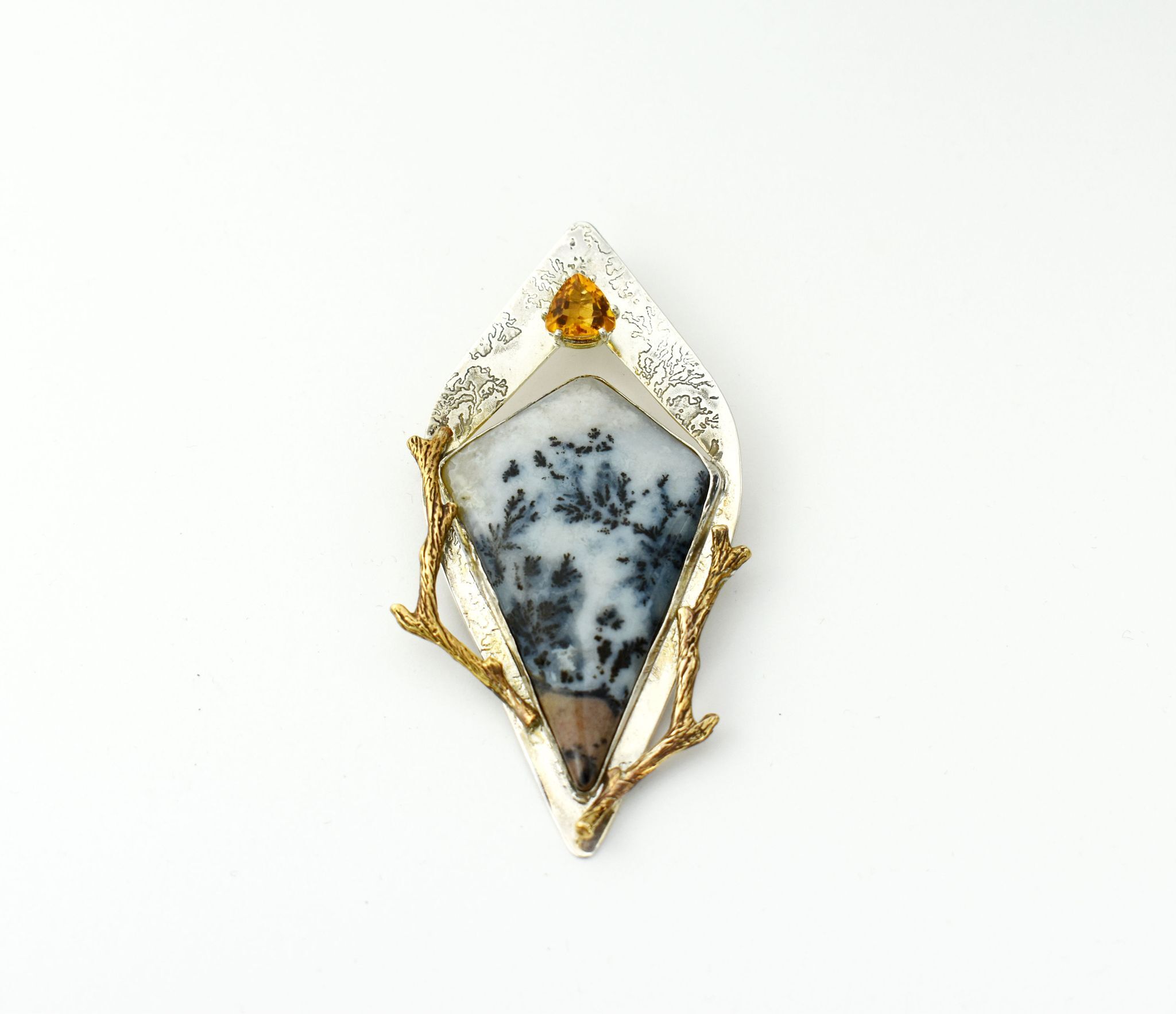 Sterling Silver & Bronze Dendritic Agate and Citrine Pendant & Pin