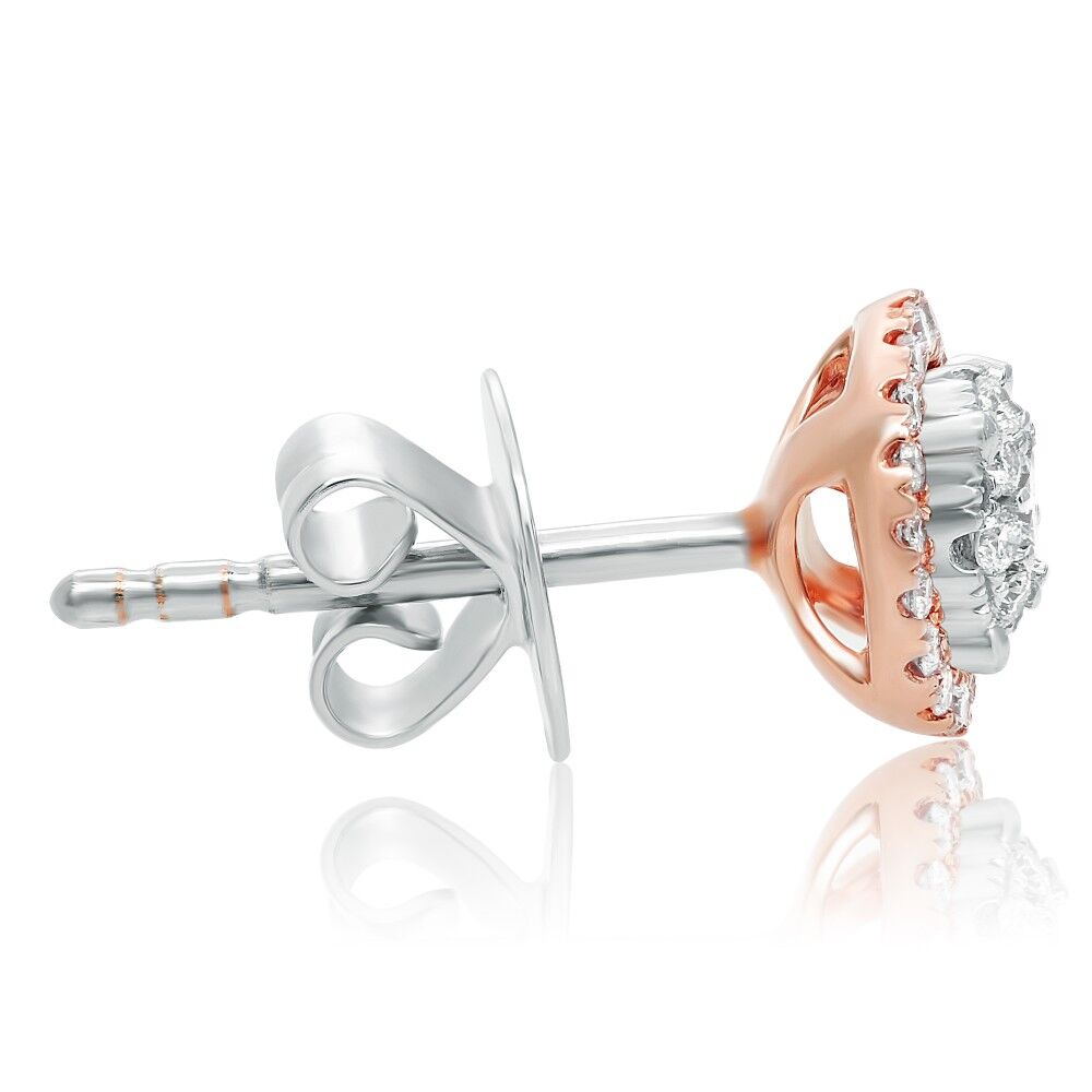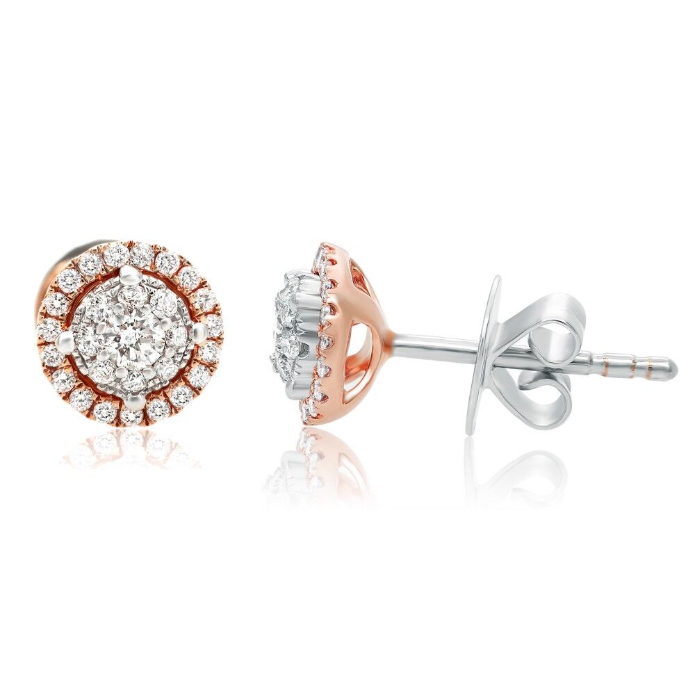 CIRCULAR ROSE GOLD DIAMOND HALO WITH WHITE GOLD DIAMOND CLUSTER CENTER  STUD EARRINGS