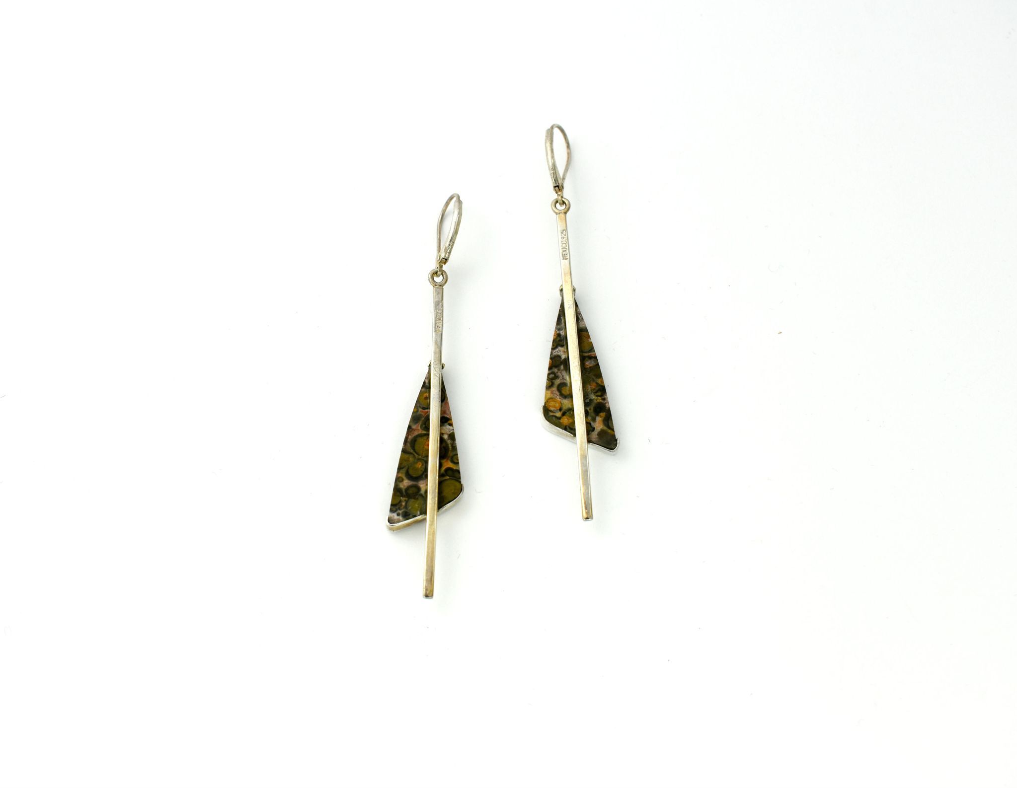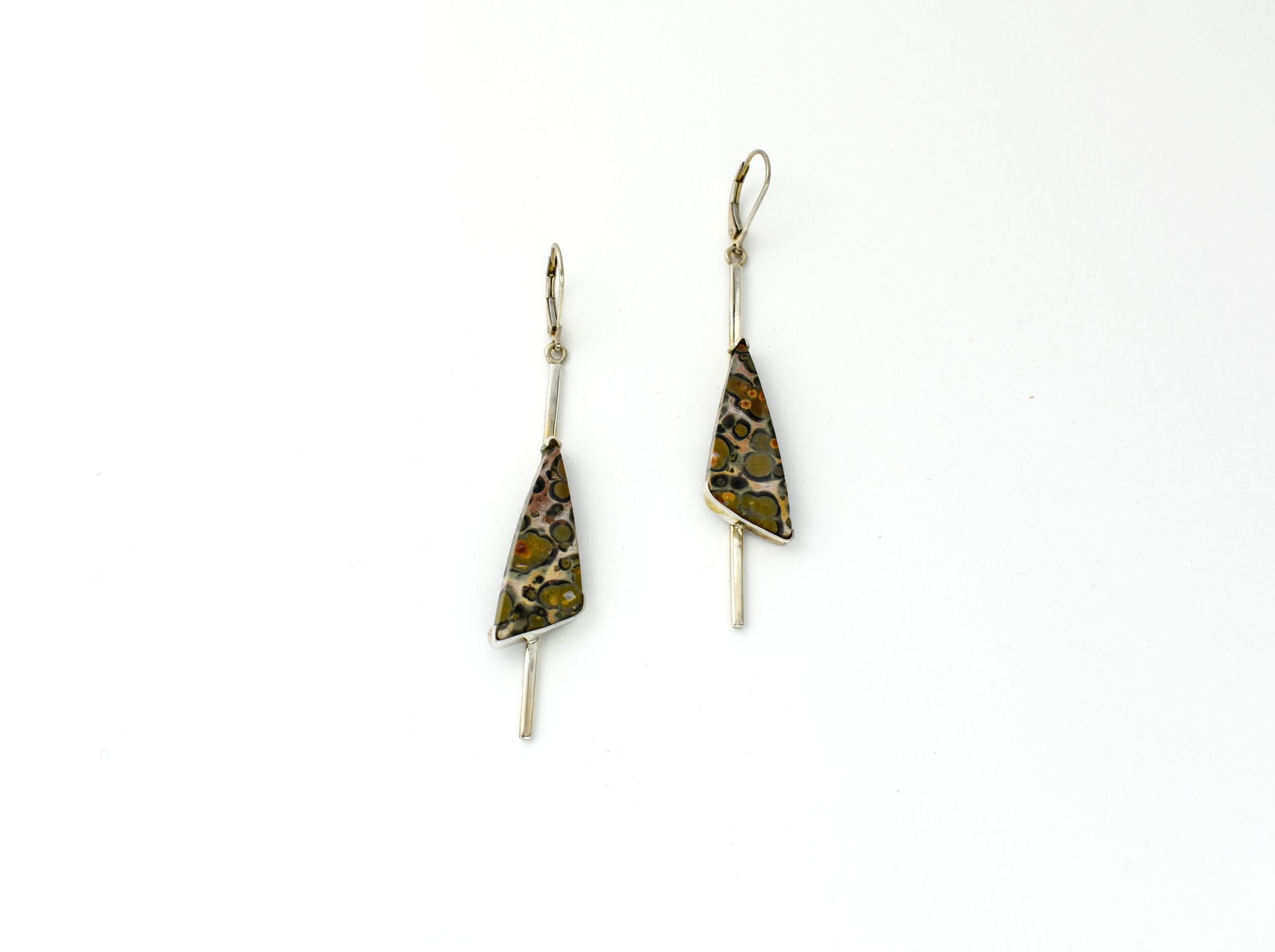 Sterling Silver Lever Back Earrings with Spotted Jasper Gemstone.