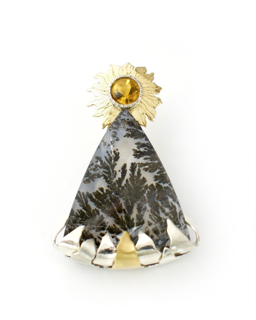 Sterling Silver and 14k Yellow Gold Dendritic Quartz and Citrine Pendant