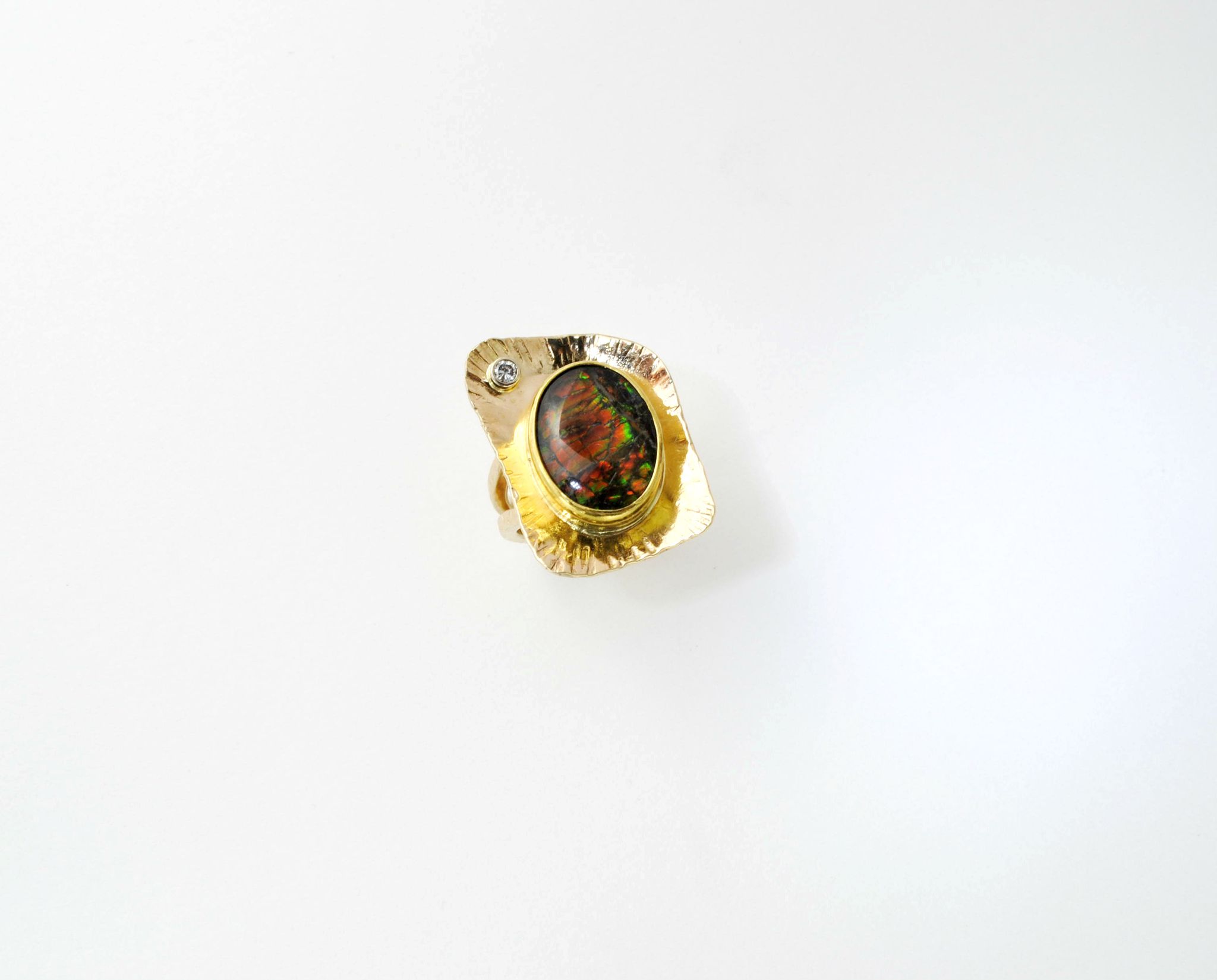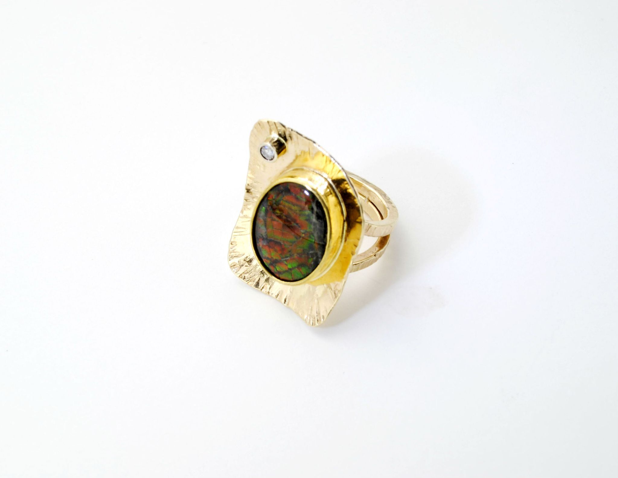 14k yellow gold & 22k yellow gold Ammolite and Diamond Ring