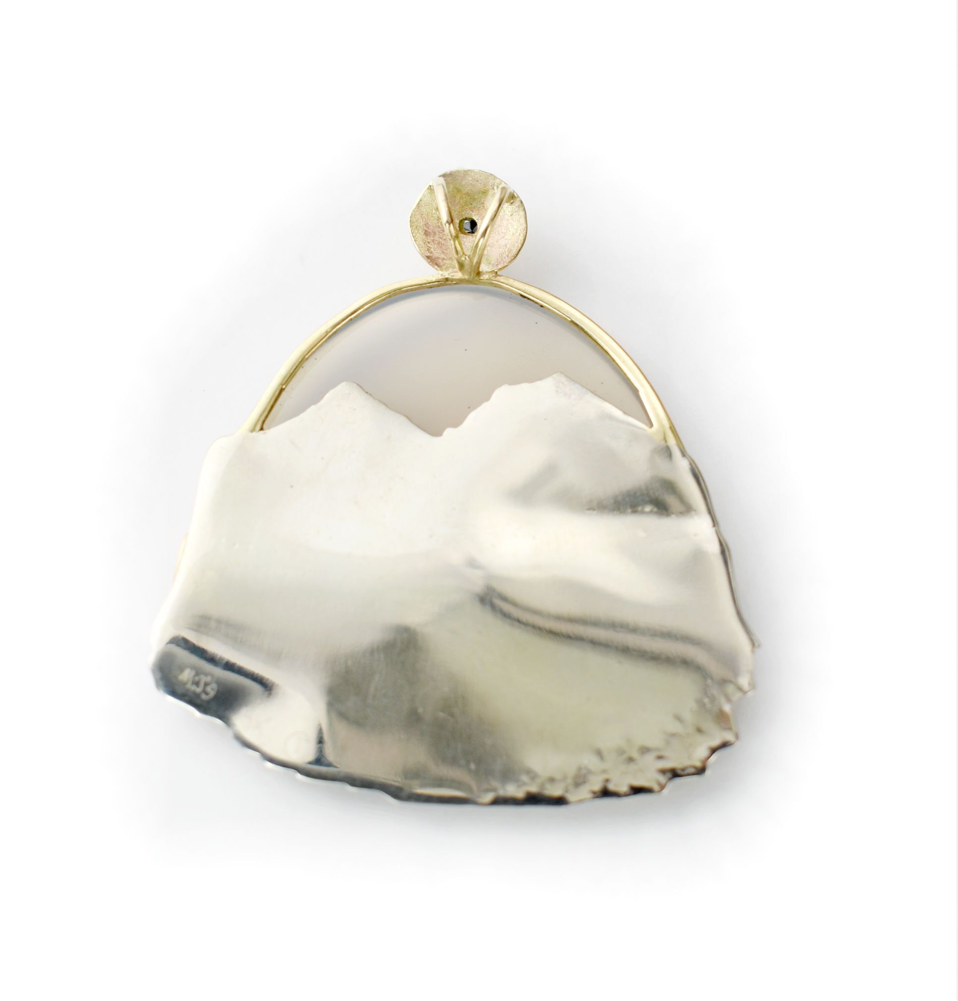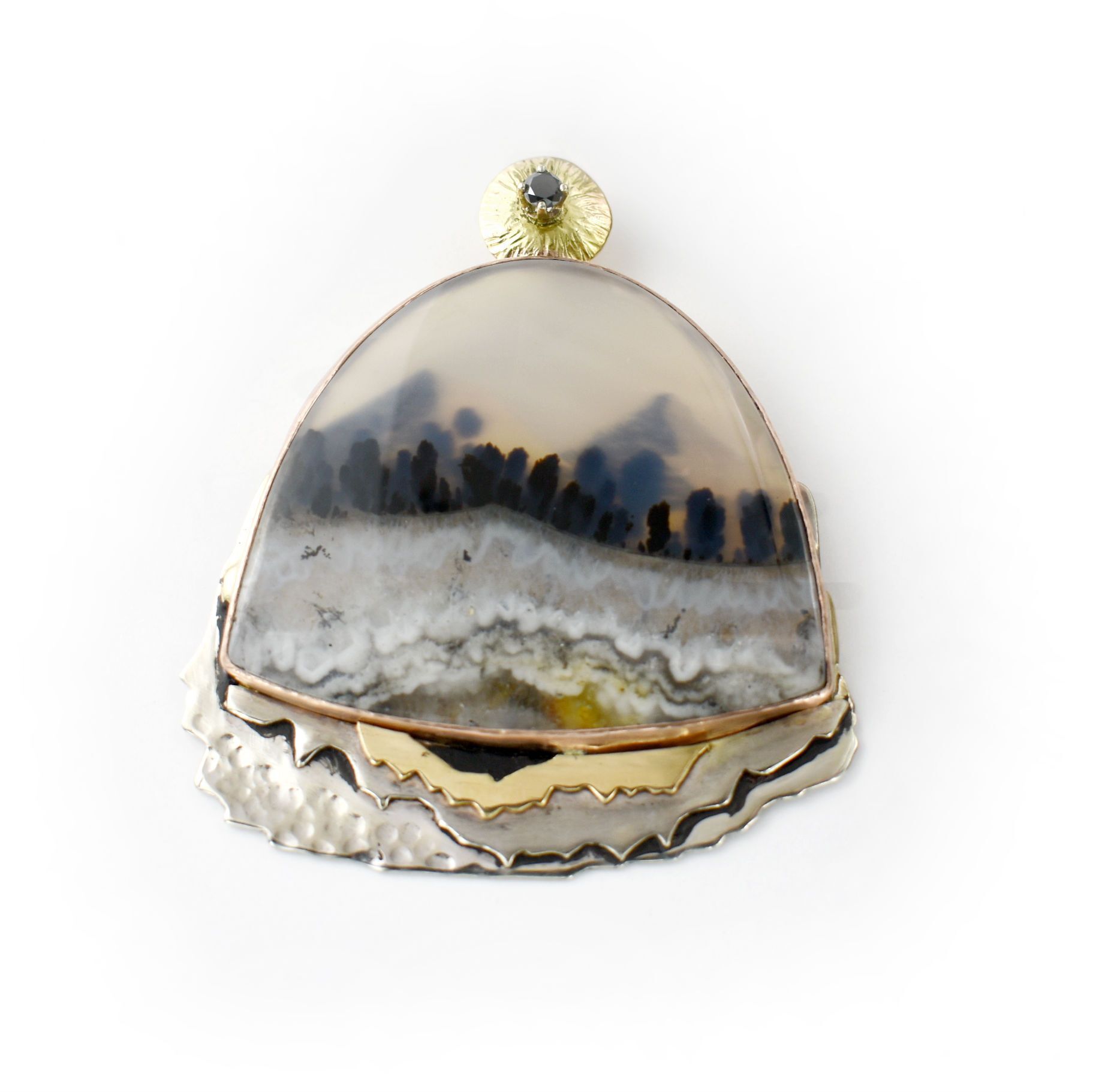 14k White Gold, Yellow Gold and Pink Gold Agate Pendant with Black Diamond.