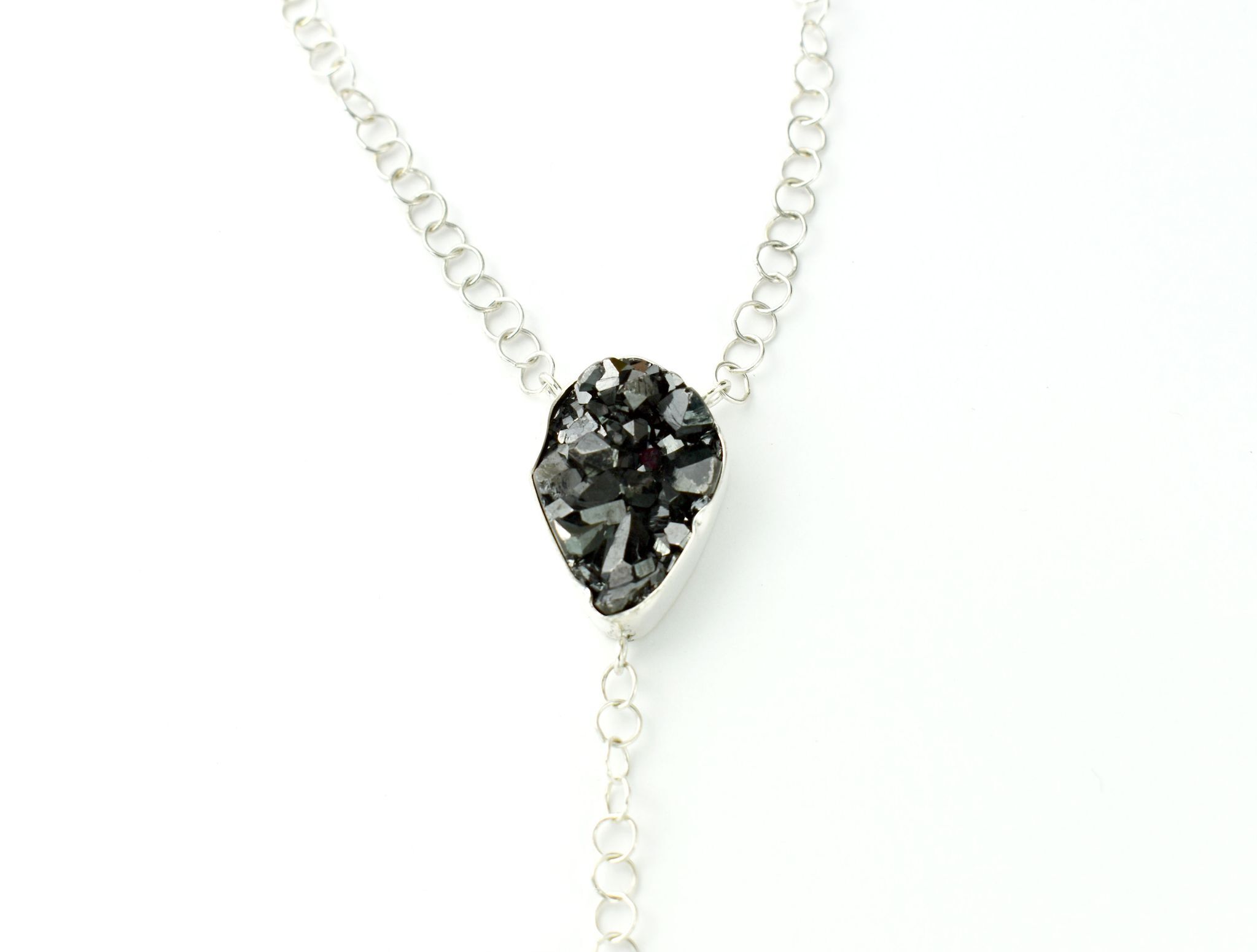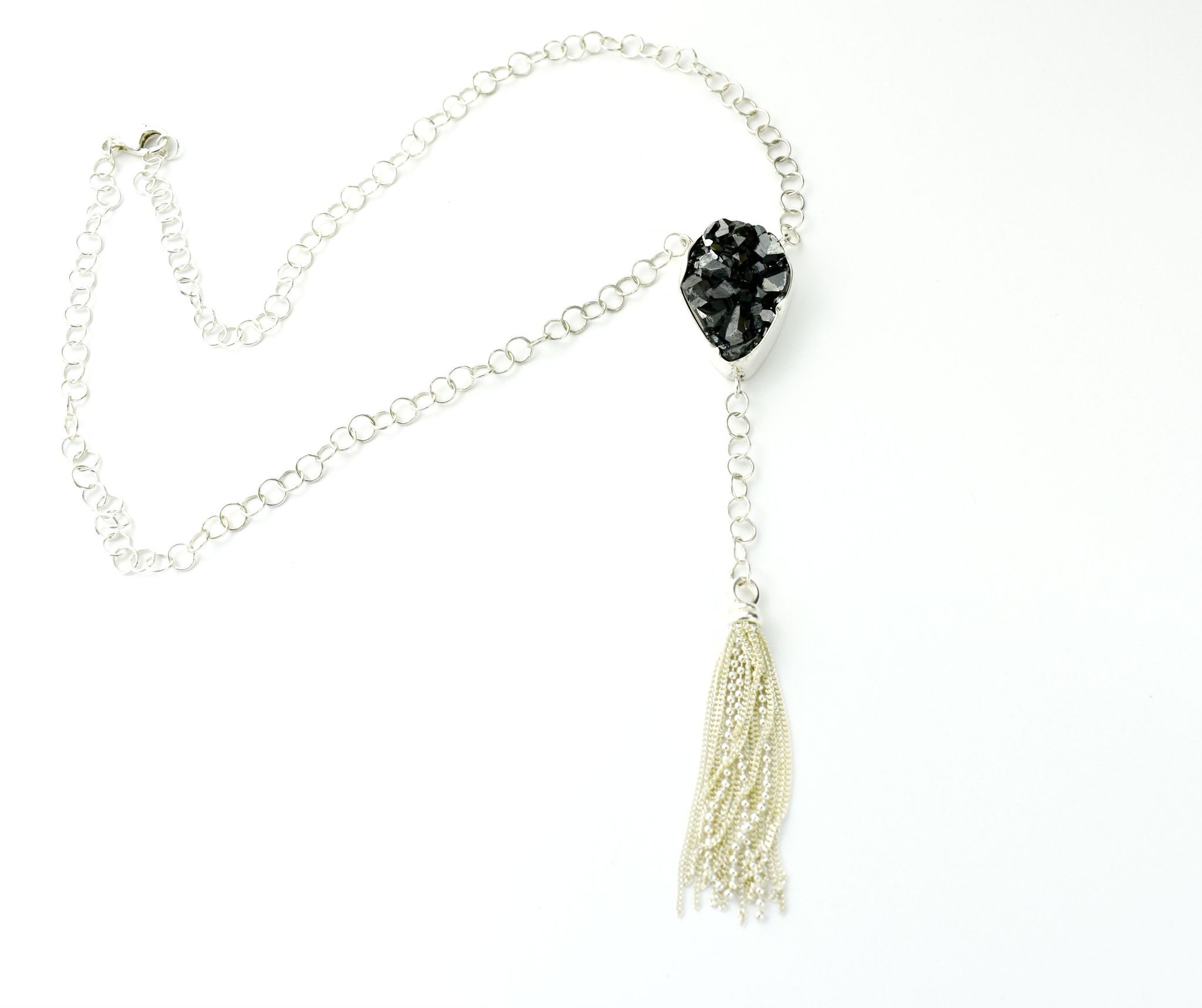 Sterling Silver Rough Hematite “Y” necklace with tassel on an adjustable chain